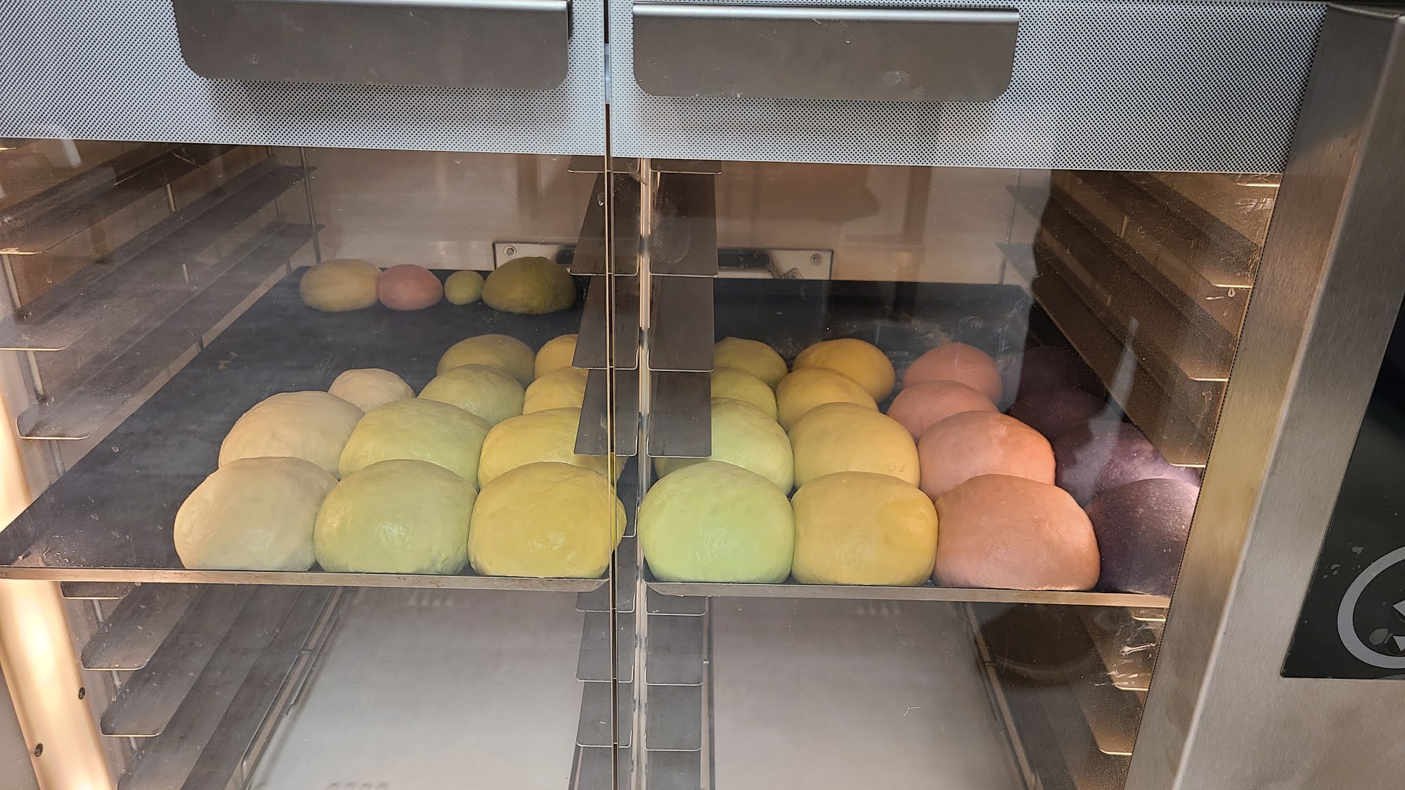 7種麵團分別為原味,士多,芒果,檸檬,綠茶,班蘭,紫薯